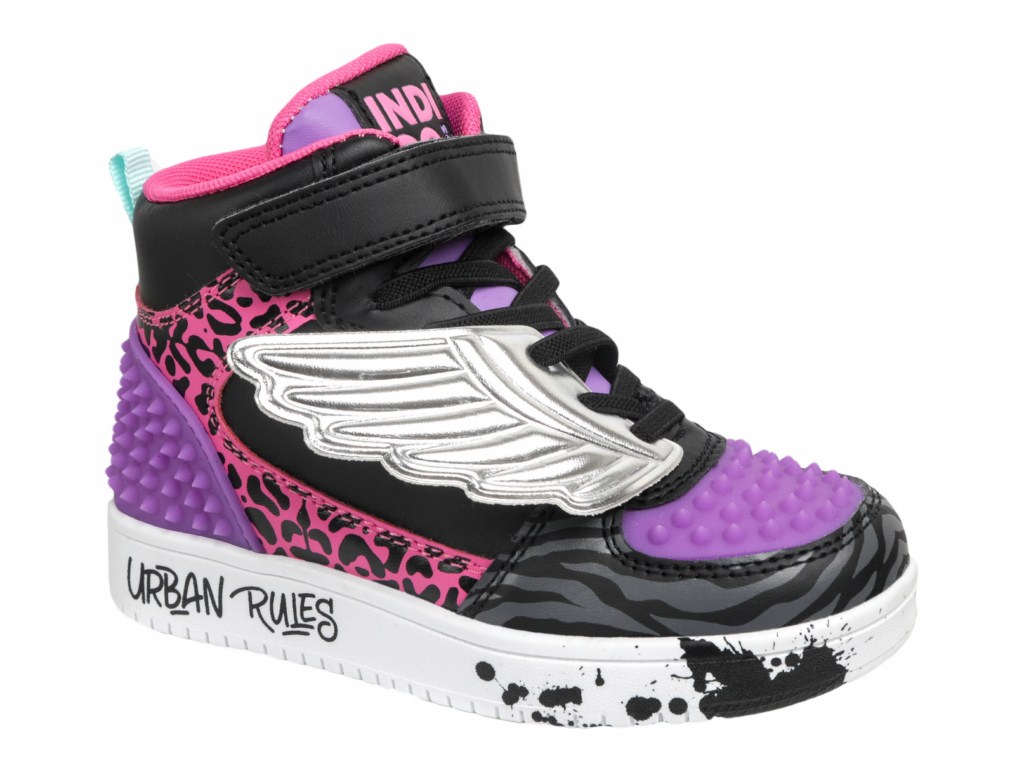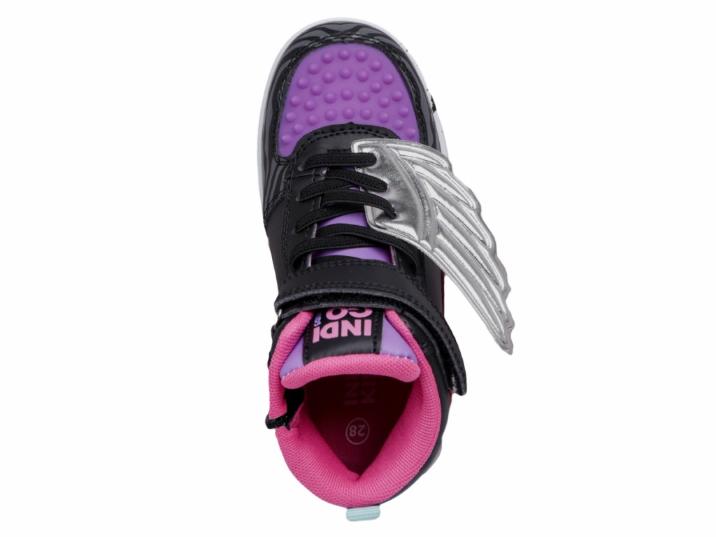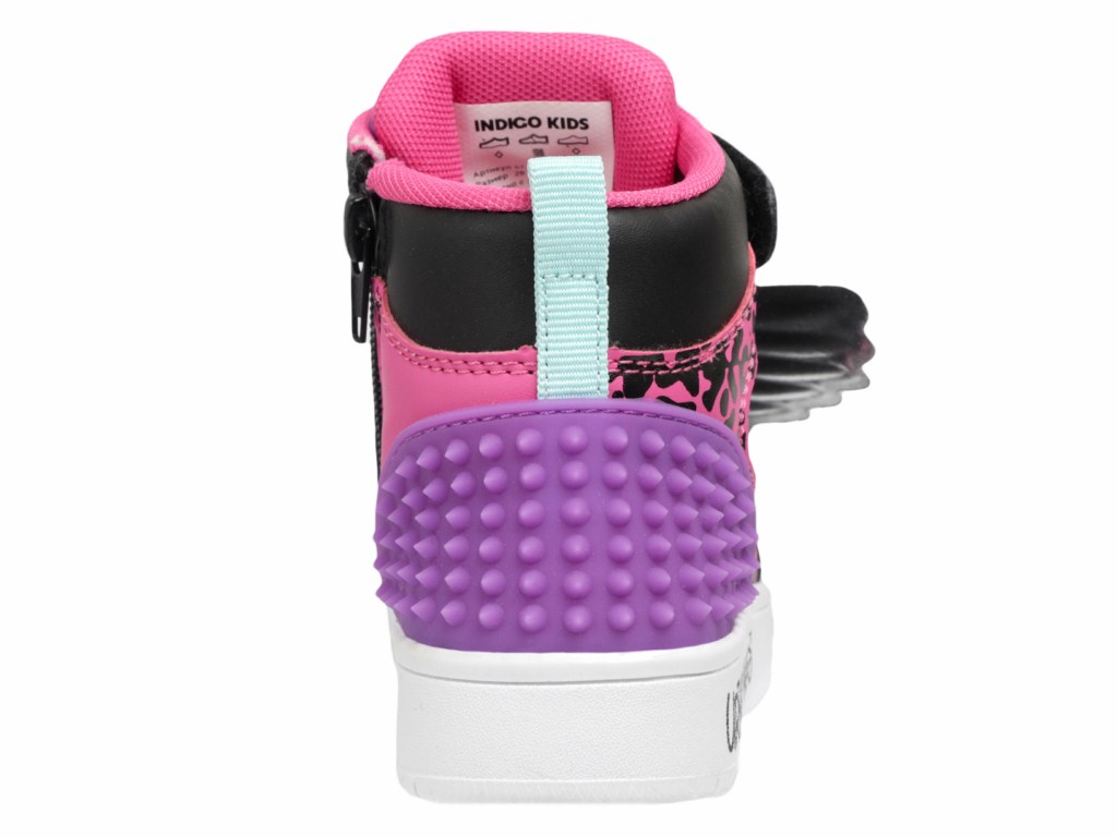 Ботинки для девочек от бренда INDIGO KIDS для повседневной носки и активного отдыха. Размеры 28-33. Кроссовки детские INDIGO KIDS с интересным цветовым решением выглядят очень эффектно: множество контрастных деталей, принты на ботинках и в подошве, оригинальные резиновые шипы в носочной и пяточной части. Отличительной особенностью модели являются "крылья", которое крепятся на эластичную шнуровку. Сбоку модели идет молния. Высокие кроссовки изготовлены из современного материала - высококачественной экокожи. Подклад текстильный, благодаря ему внутри обуви создается оптимальный микроклимат для детских ног. Текстильная стелька анатомической формы поддерживает свод стопы в правильном положении. Подошва из материала ТЭП хорошо гнется, отличается прочностью и позволяет без усталости преодолевать большие расстояния. Кроссовки детские подойдут на среднюю стопу и средний взъем.