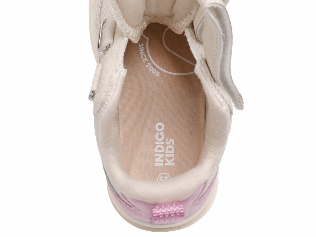 Маленьким ножкам – большая свобода с полуботинками INDIGO KIDS! Модель разработана специалистами бренда INDIGO KIDS с учетом особенностей детской стопы, которая ничем не сдавливается при движении, обретая ощущение свободы и комфорта в каждом шаге. Широкая носочная часть даёт пальчикам расправляться в их естественной форме. Модель выполнена из комбинирования материалов верха: натуральной кожи и текстиля. Натуральная кожа, обладая превосходными механическими свойствами, увеличивает износостойкость и срок службы обуви, в свою очередь текстиль придает легкость модели. Для лучшей посадки и удобства по верхнему краю - канту, и в язычке встроены смягчающие элементы. Для подкладки использовали хлопковый текстиль, он мягкий, имеет отличную воздухопроницаемость – «дышит», держит форму, устойчив к истиранию и быстро сохнет при намокании, сохраняя яркость цвета. Вкладная анатомическая стелька изготовлена по технологии ортолайт, верхний слой у которой из материала как у подкладки, а нижний – это высокотехнологичный пенополиуретан с вкраплениями угля и антибактериальной пропиткой. Совокупность этих материалов и самой формы стельки обеспечивает лучшую амортизацию, отвод влаги и препятствует развитию бактерий, вызывающих неприятный запах, и поддерживает свод стопы в правильном положении. Эксклюзивная подошва – невысокая, супер-гибкая, с широкой носочной частью, выполненная из облегченного ТЭП с фирменным мишкой на следе. ТЭП - универсальный материал: прочный, эластичный, износостойкий, обеспечивает хорошее сцепление с грунтом. Такая подошва позволяет ножкам двигаться совершенно естественно, развивать силу и гибкость стоп, а также улучшать равновесие и координацию ребенка. Полуботинки надежно фиксируются на ноге благодаря ремешкам на липучке. Для удобства захвата ремешков, они оснащены маленькими резиновыми элементами на концах. Также на модели пришиты текстильные петельки для облегчения обувания. Полуботинки подойдут на широкую стопу с высоким взъемом. Подбирайте обувь Вашему ребенку правильно: длина стельки должна быть больше длины стопы в среднем на 0,8 – 1,0 см (+- 0,2 см в зависимости от особенностей стопы).