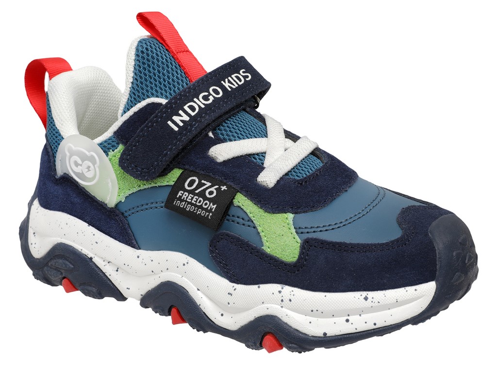Детская кроссовки INDIGO KIDS для повседневной носки на улице летом и в демисезон, а также для занятий спортом. Кроссовки изготовлены из экокожи - экологическичистого, современного, высококачественного материала, приятного на ощупь и обладающего дышащим эффектом, со вставками из натуральной кожи. Текстильный подклад и текстильная анатомическая стелька, изготовленная по технологии ORTOLIGHT с вкраплениями угля, создают внутри обуви комфортный микроклимат, эффективно поглощают влагу и обеспечивает вентиляцию, что помогает ноге оставаться сухой даже при длительных прогулках. Легкая и прочная подошва ЭВА с вставками из ТЭП обладает отличными амортизационными свойствами, имеет хорошее сцепление, устойчива к истиранию. На ногах кроссовки крепятся с помощью ремня на липучке и эластичных шнурков, благодаря им регулируются высота взъема и полнота стопы. Кроссовки детские подойдут на среднюю стопу и средний взъем. Подбирайте обувь вашему ребенку правильно: длина стельки должна быть больше длины стопы в среднем на 0,8 – 1,0 см (+- 0,2 см в зависимости от особенностей стопы).