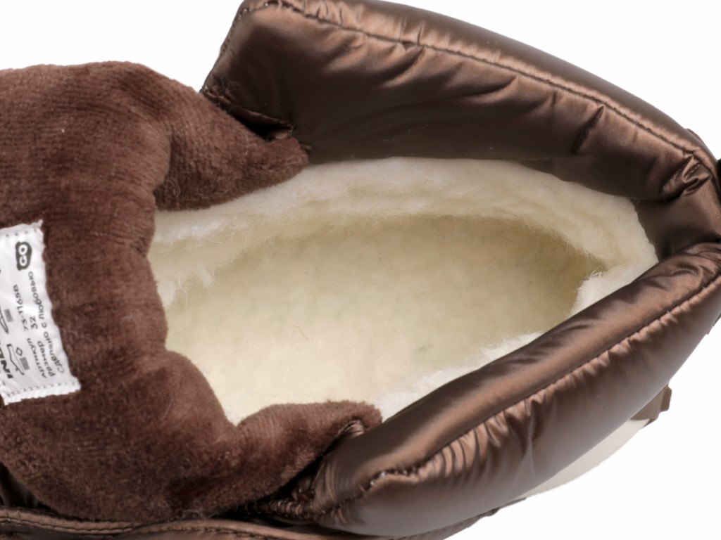Стильные и удобные WATERPROOF ботинки для девочки с ЭКСКЛЮЗИВНОЙ подошвой только в INDIGO KIDS! Подарите своей принцессе не только красивую, но и невероятно комфортную обувь! Эти ботинки сочетают в себе последние тенденции моды, заботу о здоровье и высочайшее качество материалов. Мерцающие сапожки WATERPROOF - идеальный вариант для зимы, изготовлены с использованием мембранных материалов, которые не пропускают влагу внутрь обуви и позволяют ногам дышать. Эту обувь лучше всего носить с термоносками. Верх изготовлен из высококачественного водо- и грязеотталкивающего текстиля с элементами из натуральной кожи. Подклад из шерсти и съемная инновационная шерстяная стелька с фольгой создают оптимальный микроклимат внутри. Стелька анатомической формы состоит из трех слоев - гигроскопический материал средней части стельки обеспечивает циркуляцию воздуха, обладает абсорбирующими свойствами и создает отличный амортизационный эффект. Верхний шерстяной слой стельки обладает высокими антибактериальными свойствами, сохраняет ноги ребенка в сухости. Нижний слой стельки из фольги надолго сохраняет тепло. На ножке ребенка обувь крепится с помощью широкого ремня на липучке, который надежно фиксирует ногу. Подошва материала ЭВА - легкая, гибкая, при этом прочная и износостойкая, обеспечивает хорошее сцепление и препятствует скольжению. Носочная и пяточная части усилены, для защиты стоп. Рекомендованный температурный режим при активном использовании – до -30 оС. Модель подойдет на полную ногу и высокий взъем.