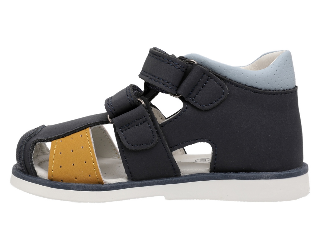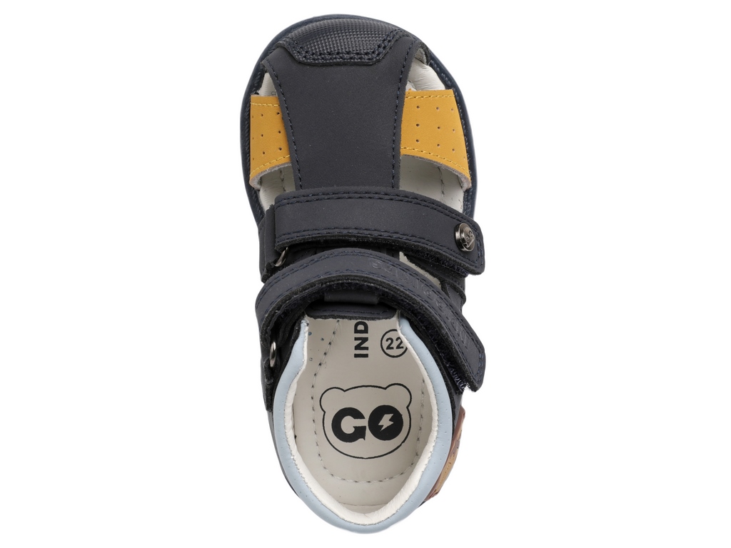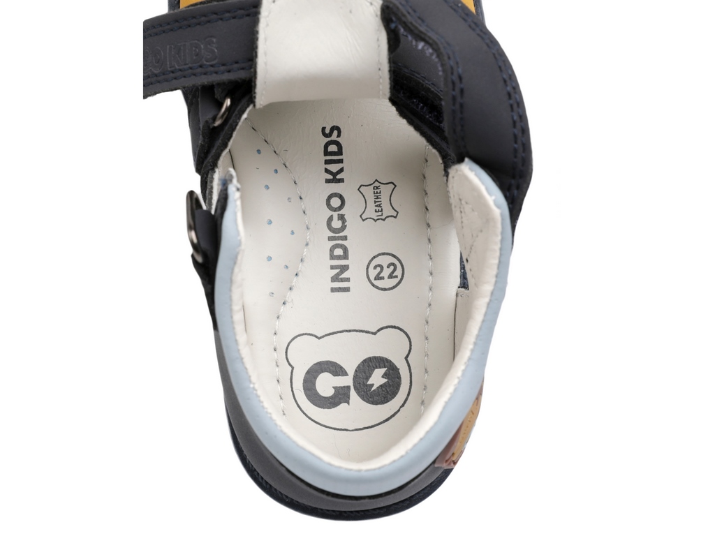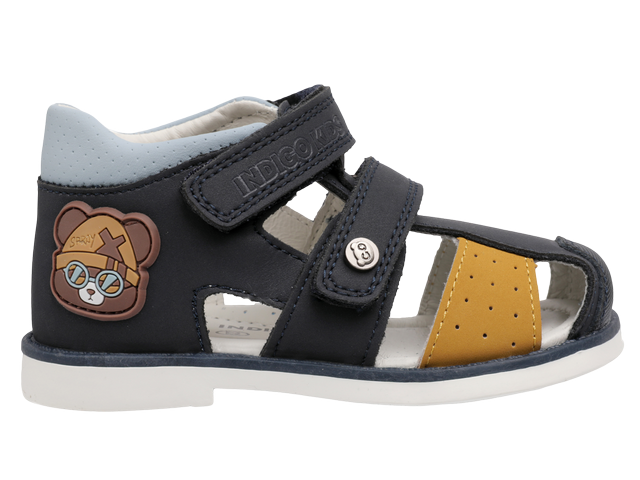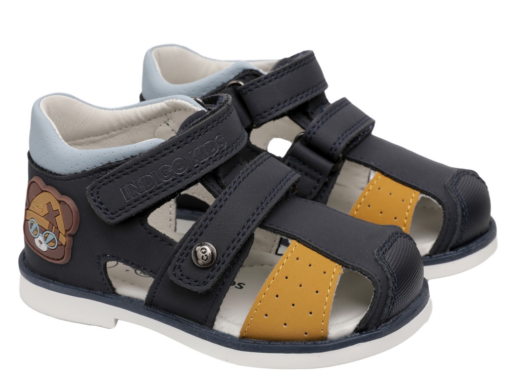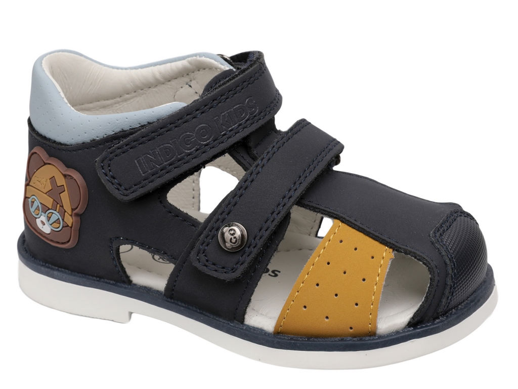 Сандалии с закрытыми пяточной и носочной частями от бренда INDIGO KIDS для здорового развития стопы Вашего ребенка. Сандалии созданы специально для того, чтобы каждый шаг был не только радостным, но и правильным, они способствуют профилактике вальгусной деформации и залогу гармоничного развития опорно-двигательного аппарата. Сандалии представлены в приятных пастельных оттенках с очаровательным декором в виде фирменного мишки. Нос в сандалиях дополнительно укреплен. Верх, подкладка и стелька выполнены из натуральной кожи. Это гарантирует комфортный микроклимат, ножки Вашего малыша будут дышать. У модели два регулируемых ремешка, которые застегиваются на практичную липучку-велькро, они позволят идеально подогнать обувь по взъему ножки. Высокий жесткий задник уверенно поддерживает ножку, а мягкий кант по верхнему краю обеспечивает идеальное прилегание без натирания. Ребенку удобно, а ножка не «ходит ходуном». Внутри сандалий еще одна важная деталь – фирменная анатомическая стелька. Она имеет подсводник, который мягко поддерживает свод стопы в правильном положении, обеспечивая комфорт на протяжении всего дня. Эксклюзивная подошва из ТЭП разработанная нашими экспертами, она сочетает в себе оптимальную жесткость для поддержки и необходимую гибкость в месте переката стопы. Это идеальный баланс, обеспечивающий правильный толчок при ходьбе. Подошва оснащена асимметричным каблуком Томаса, удлиненным с внутренней стороны, что предотвращает заваливание стопы внутрь и способствует естественному формированию здорового свода. На подошве спрятан маленький сюрприз – протектор в виде звездочек. На мягкой поверхности он оставляет за ребенком следы-звезды, превращая каждую прогулку в увлекательную игру! INDIGO KIDS: каждый шаг малыша – это основа его будущего здоровья! Модель подходит для детей со средней и широкой стопой и средним или высоким взъемом. Подбирайте обувь Вашему ребенку правильно: длина стельки должна быть больше длины стопы в среднем на 0,8 – 1,0 см (+- 0,2 см в зависимости от особенностей стопы).