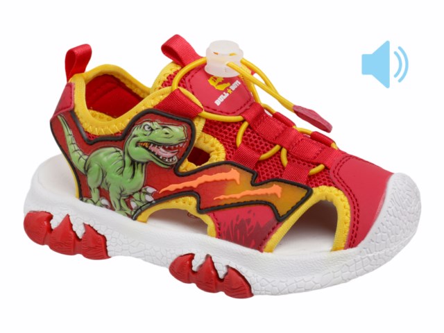 Рычащие Дино-Сандалии INDIGO KIDS: Приключения начинаются! Оригинальный декор с динозаврами по бокам дополнен звуковыми модулями, издающими задорный рык – каждая прогулка превращается в сказку, а ваш ребёнок становится героем эпохи Юрского периода! Дополняют дизайн лапы этих рептилий на профиле и следе подошвы – будто каждый шаг оставляет след древнего создания. Важно: родители могут легко отключить звук одной кнопкой, когда это необходимо! В модели стоит укреплённый носок. Мягко переходящая из подошвы на верх прочная защитная зона обволакивает пальцы, как броня динозавра – не сковывая, а оберегая. Никаких ударов о камни, никаких синяков от непредвиденных столкновений – только уверенность в каждом прыжке и беге по неровной тропе. Конструкция сандалий максимально прикрывает стопу, оставляя лишь небольшие открытые зоны. Это делает их идеальными для жаркой погоды: нога надежно зафиксирована, но при этом «дышит». Верх сандалий – это гармония материалов: лёгкий, воздухопроницаемый текстиль для вентиляции и мягкая, износостойкая экокожа, придающая форму и стиль. Подкладка из хлопкового текстиля – нежная, гипоаллергенная, гигроскопичная: даже после долгой игры стопа остаётся сухой и свежей. Стелька из экокожи – не впитывает влагу, не накапливает запахи, не деформируется. Подошва изготовлена из современного ТЭП, она сочетает в себе невероятную прочность, гибкость и превосходное сцепление с любой поверхностью – от асфальта до мокрого песка. Устойчива к истиранию, не скользит, не трескается, не теряет форму – даже после сотен километров приключений. Для фиксации на ноге в сандалиях пришит регулируемый ремешок с липучкой, который позволяет ребенку обуться самостоятельно. А текстильные петельки на пятке и язычке – незаметный, но невероятно полезный элемент: они делают обувание быстрым, даже если ручки ещё не очень ловкие. Сандалии детские подойдут на среднюю и широкую стопу со средним или высоким взъемом. Подбирайте обувь Вашему ребенку правильно: длина стельки должна быть больше длины стопы в среднем на 0,8 – 1,0 см (+- 0,2 см в зависимости от особенностей стопы).